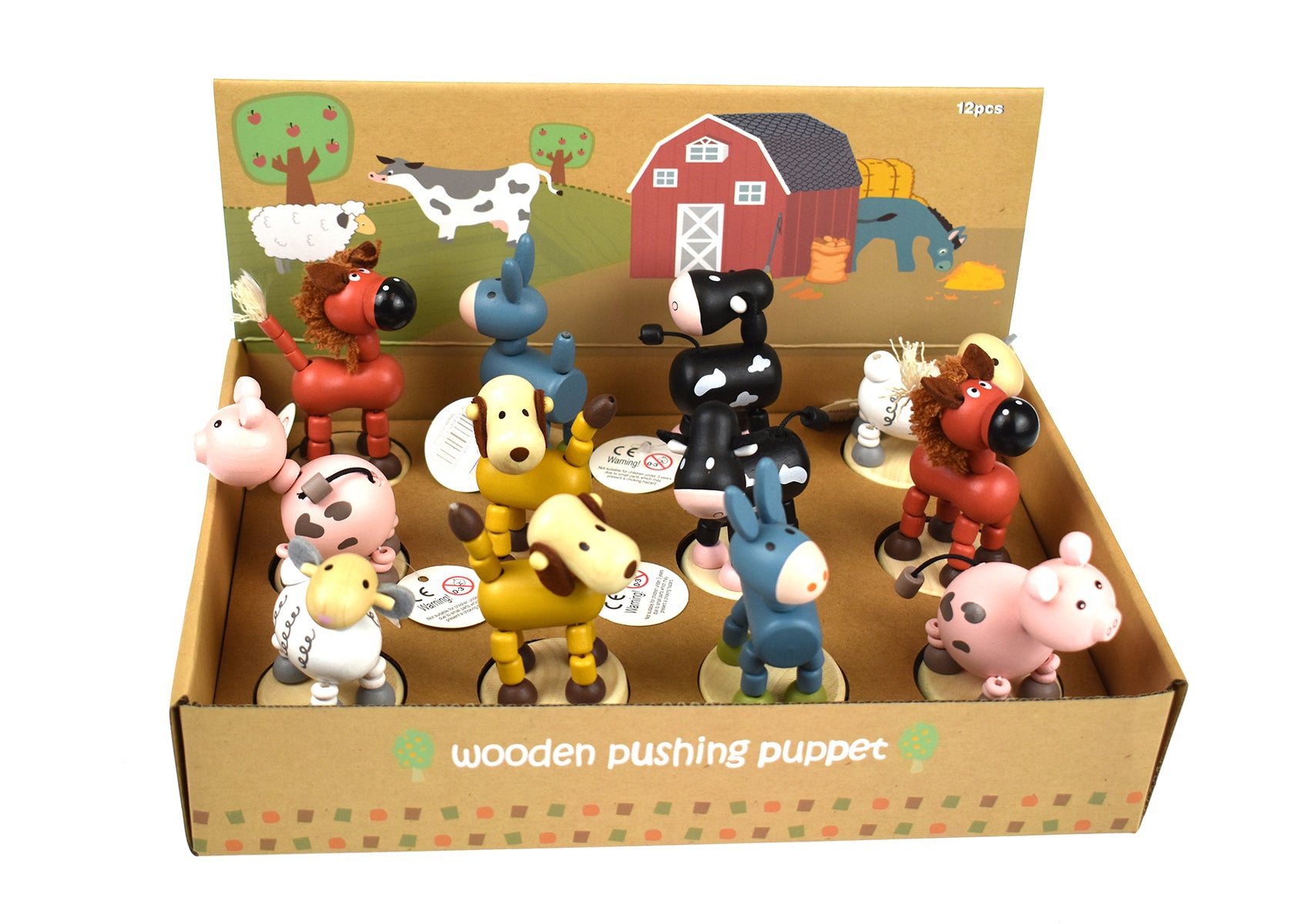 These classic fidget toys from Kaper Kidz bring joy and frivolity to any birthday, party or play time. Press on the base of these dancing animals and watch them tumble, flop and dance in your hand. They are simple to use, but offer light hearted fun for children and adults alike. Children can also develop their fine motor skills as they learn to push the animals down. The Dancing Animals come boxed displayed in six assorted designs, horse, pig, rooster, donkey cow or sheep, where you will get 2 of each design. Each wooden Dancing Animal from Kaper Kidz is made from timber and finished to the highest quality and painted in child safe, non toxic paint. Please note, price for each farm animal and there are minimum purchase of 6 animals in assorted styles.