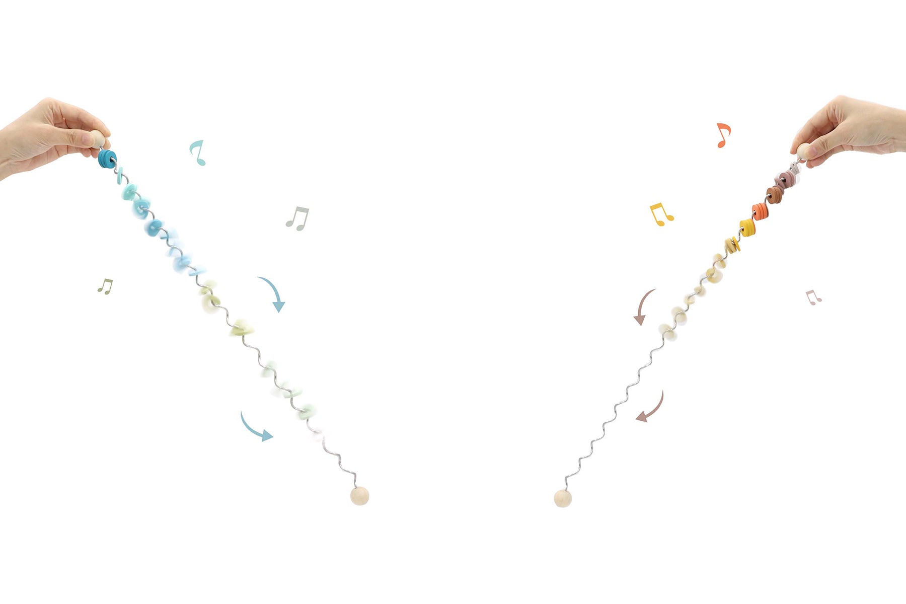 The Spirelli Spiral Fidget Toy from Kaper Kidz is calming to listen to and mesmerising to watch. Hold the Spirelli upright at one end, then flip over and watch the wooden ring gently jingle down the twisted rod, making a tinkle sound and creating a swirling pattern as they fall. Once they've all fallen, turn the Spirelli over again and watch and listen to it all over again. The Spirelli Fidget Toy is great for visual sensory exploration as well as calming with its sound. Us the Spirelli to help calm down and focus energy. Each Spirelli Spiral Fidget Toy from Kaper Kidz is made from metal & timber and finished to the highest quality and painted in child safe, non toxic paint.