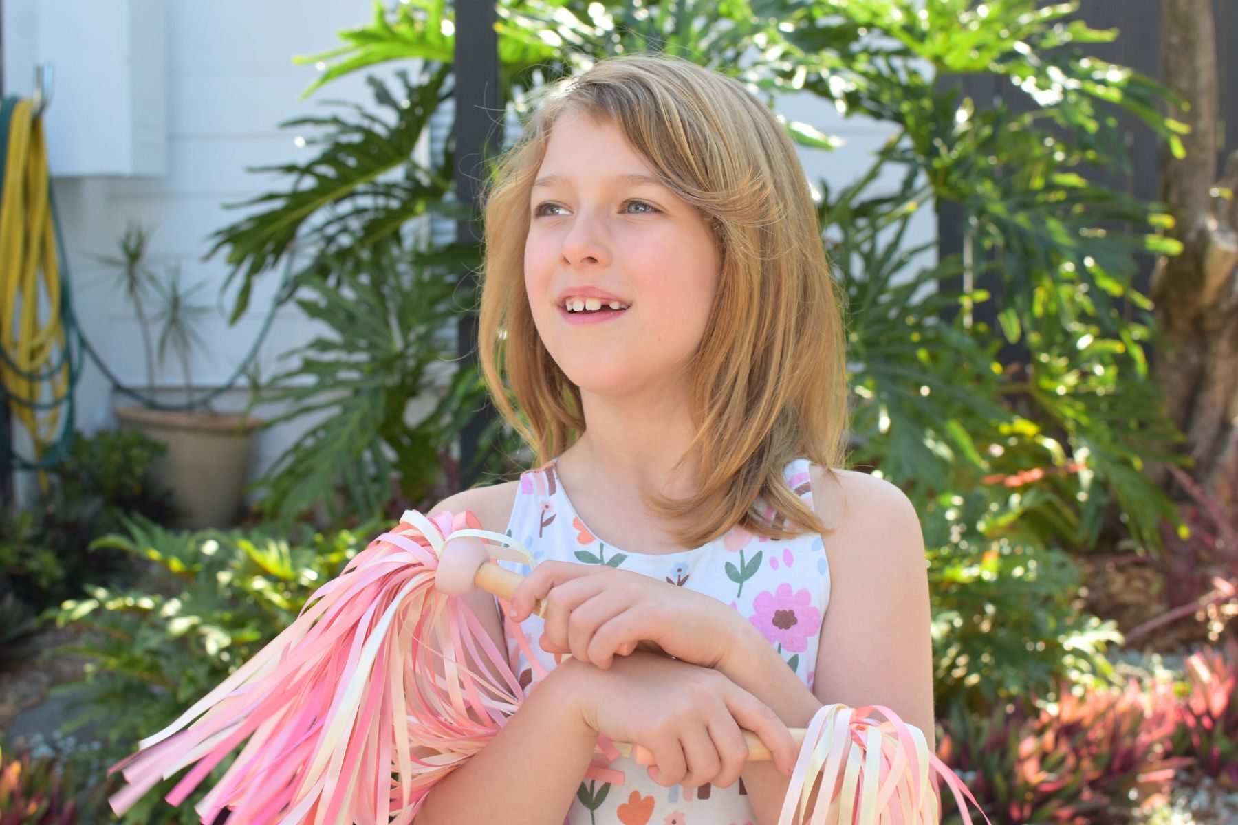 Introducing our Cheerleader Pom Poms, the essential accessory to add flair and excitement to any performance or spirited occasion. Crafted with smooth wooden handles for a comfortable grip, these pom poms feature flowing fabric streamers that create vibrant bursts of color and movement. Designed to ignite team spirit, the colorful streamers energize both the crowd and the cheerleading squad, enhancing morale and engagement. They complement energetic routines, encouraging physical activity, coordination, and synchronization among cheerleaders, making performances dynamic and captivating. These pom poms also foster creativity and self expression during routines, allowing cheerleaders to showcase their unique style and add personal flair. The elegant contrast between the wooden handles and lively streamers ensures a visually striking appearance that captivates the audience. Symbolizing unity and teamwork, the pom poms are a powerful visual representation when waved in unison by the squad. They are durable and reusable, crafted for multiple uses across various events such as sports games, pep rallies, and competitions. Elevate your cheerleading performances with our Cheerleader Pom Poms, where comfort meets style to enhance team spirit, visual impact, and the excitement of every cheer. Colour picked at random.
