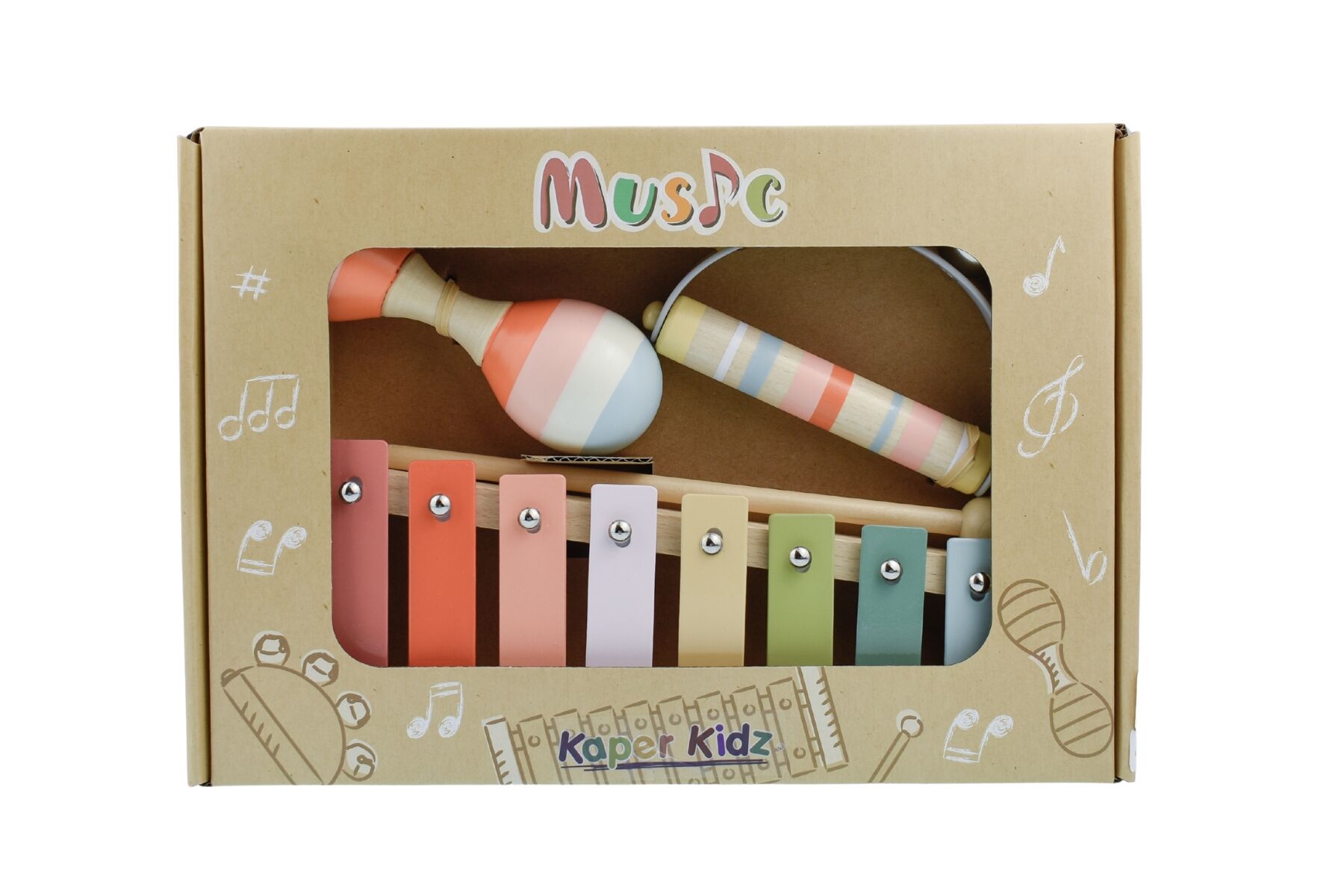 Let the band begin with the Wooden Music 3pc Xylophone Set Orange Kaper Kidz, where little ones can shake, tap, and jingle their way through a rainbow of sound! This delightful pack includes a vibrant colourway of a sunny orange-striped set radiating cheerful pastel charm.