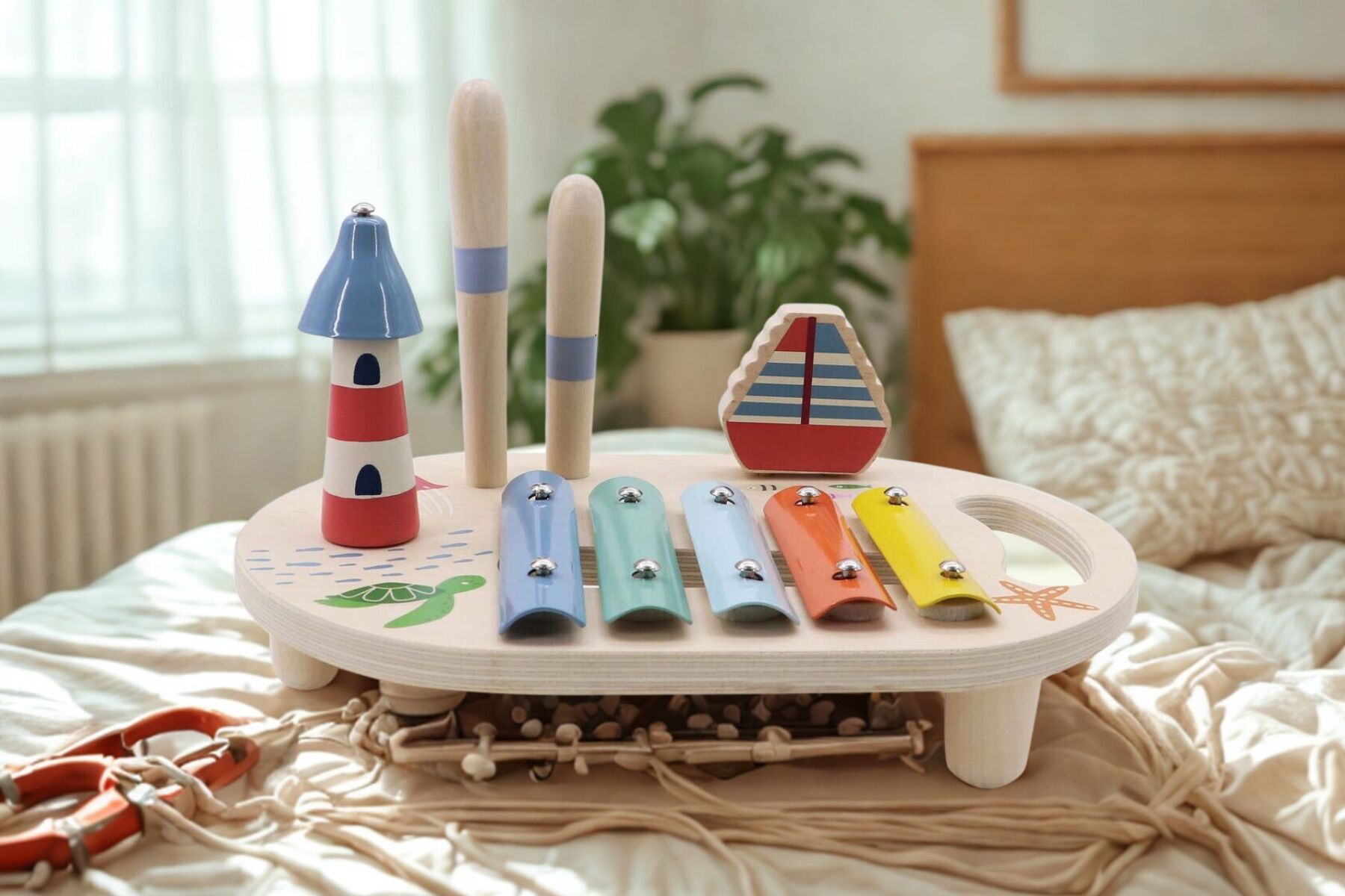 Crafted from quality wood and finished with non-toxic, child-safe paints, the Wooden Ocean Music Table from Kaper KidZ=z is the perfect blend of whimsy, learning, and hands-on fun???making every day a splashy symphony under the sea!