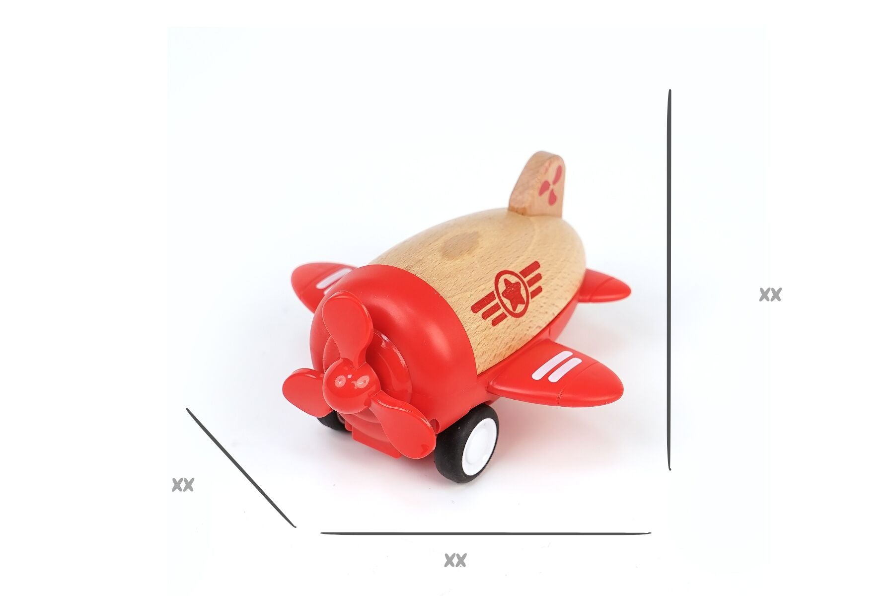 Crafted with care from smooth, sustainable wood and plastic components, this delightful plane features a working propellor that spins as it races along. Its bright red finish and beautifully detailed design make it as much a treat for the eyes as it is for the ears.